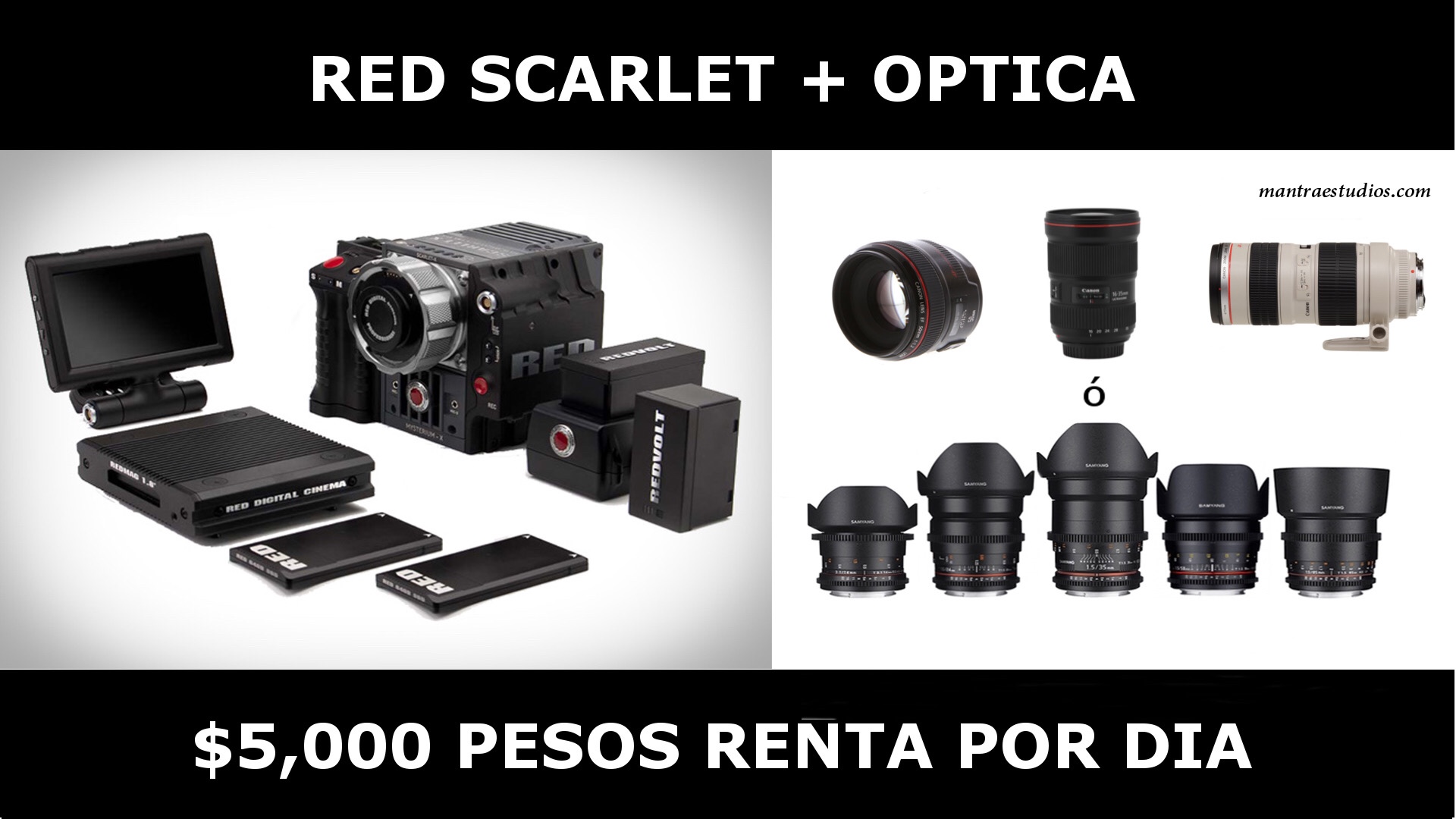 *Camara Red Scarlet *Monitor red pro *8 baterías red con cargadores *1 batería v-mount con cargador *2 tarjetas red 64gb ssd *Lector de tarjetas red